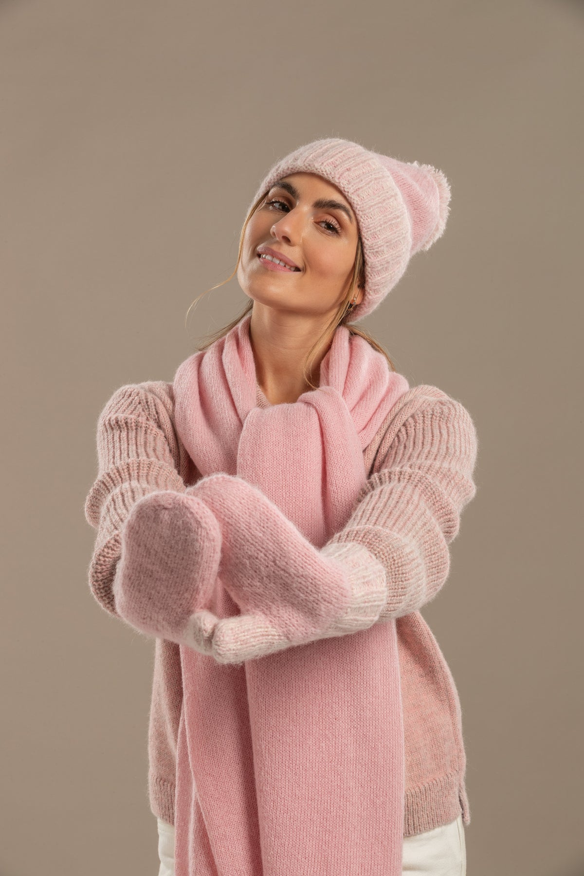 These mittens can't be missed on a chilly autumn or winter walk or ride with the bike. This duo is windproof thanks to a very fine, soft fleece inside. Baby alpaca. Handknitted. One size.