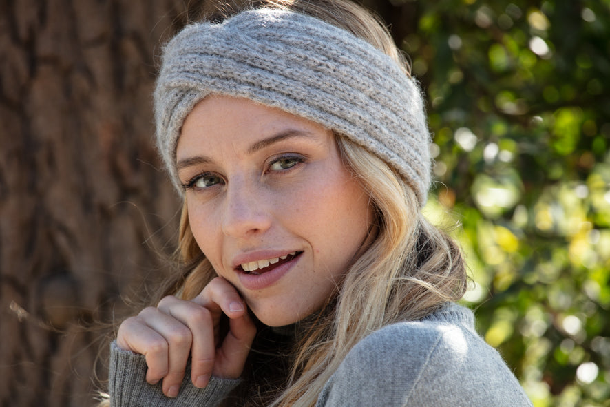 Our hand knitted baby alpaca headband is very efficient. Imagine a chilly autumn morning or a cold winter walk and, oh no : I have to ride my bike and it's freezing! No problem when you have this little friend at hand. It's keeping your ears and head pleasantly warm. The fine, soft fleece headband inside makes it windproof. You can easily put it in your handbag afterwards. Baby alpaca. One size.